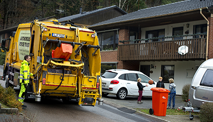 – När man kör ut från depån gör man det precis som vanligt, men när soptömningen börjar ställer man om bilen i automatläge och låter den följa efter som en hund, säger Lars Stenqvist.